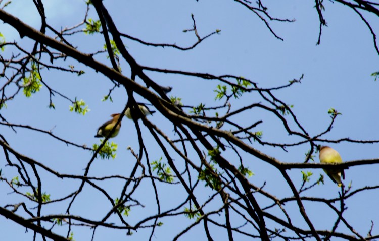 While I was focusing on photos, Vicki had a blast watching the cedar waxwings in the top of a tree right above us. The pair of birds had a stem or branch with seeds on it and were passing it back and forth, holding it while the other pulled off a seed and ate it, then passing off the stem so it could get a bite of its own.