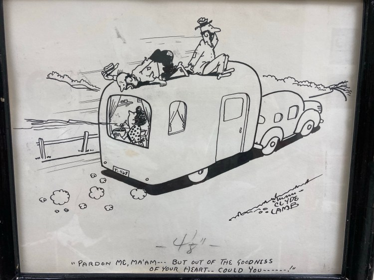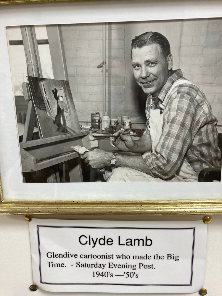 Then there is the tribute to “Cousin” Clyde Lamb, who probably is no relation since he could actually draw. Local kid achieves measure of fame with cartoons.