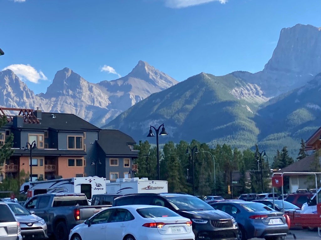 Today’s campground is in Canmore, Alberta, which is in a valley between two ranges of mountains.