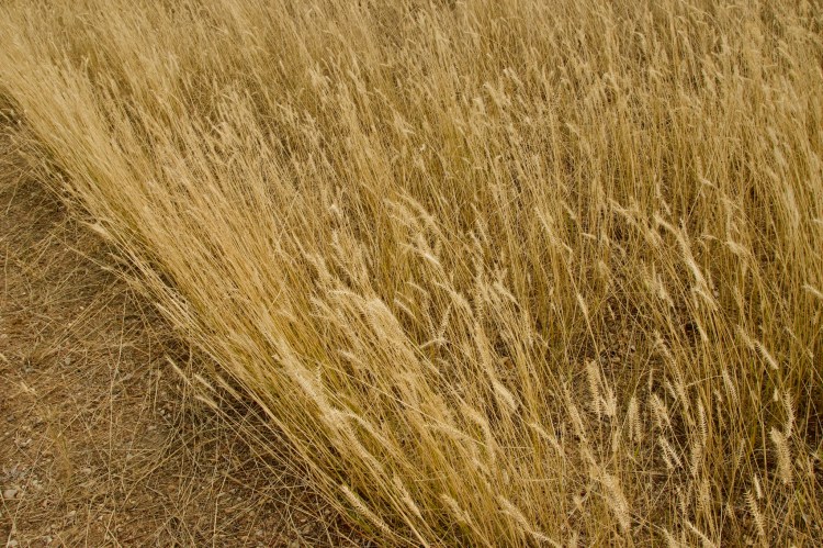 It’s a dry, harsh country at the center. In early September, the ground is parched and cracked. The stems and seed-heads of an unknown prairie grass are about all that is showing above the dirt and animal scat.