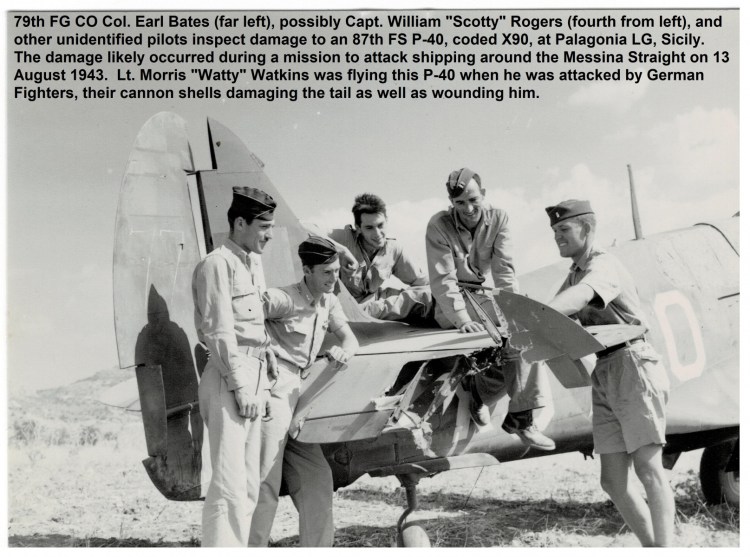 However, while cruising the Internet during my research today, I found a link to a treasure box. On the findagrave site with my cousin’s gravestone in Arlington National Cemetery, I found that someone had left a note referring to the 87th Fighter Squadron of the 79th Fighter Group. I recognized the “skeeter” patch of the 87th. Following that link (https://79thfightergroup.com/87th-fighter-squadron-pilot-roster) led to many photos I had never seen and to the records of his service with that squadron. He had 81 missions in Africa, Italy and probably southern France, and he is noted to have received the Purple Heart, the Air Medal and eight Oak Leaf Clusters. I know he also received a Distinguished Flying Cross, but the 87th did not mention that.