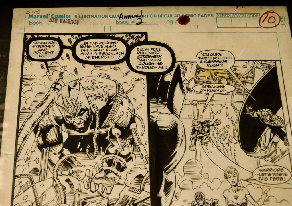 I also got a kick out of seeing the production methods used by the graphic artists who put the comics together. Writing with blue pens, pasting in corrections for individual letters or entire thought balloons.