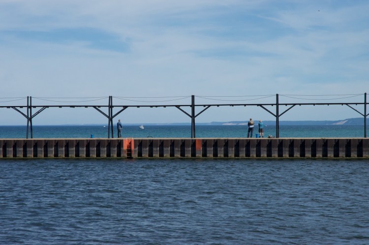 We took the wrong turn in construction and ended up on the south side of the harbor opening in Manistee. But since the lighthouse does not have tours, and because the lake was so gorgeous that day, we just walked on the south pierhead and got a few photos from across the way.