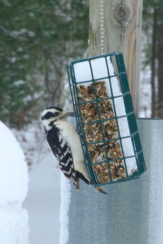 Here we are, in Michigan, home to lake effect snow, and experiencing our first *real* winter in years. And what do we do? As retirees, we get to stay indoors in our little cabin by the River Clam and watch the snow fall and the birds come to visit the feeder.